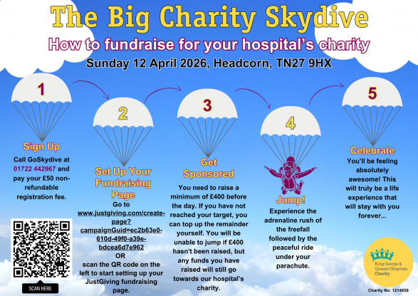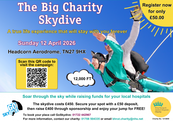 No problem! You can book any available date and time directly with GoSkydive. For more information on how to arrange this, give our charity a call at 01708 504335 or email us at bhrut.charity@nhs.net.